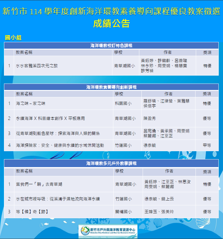 海洋環教素養教案徵選成績公告如下: