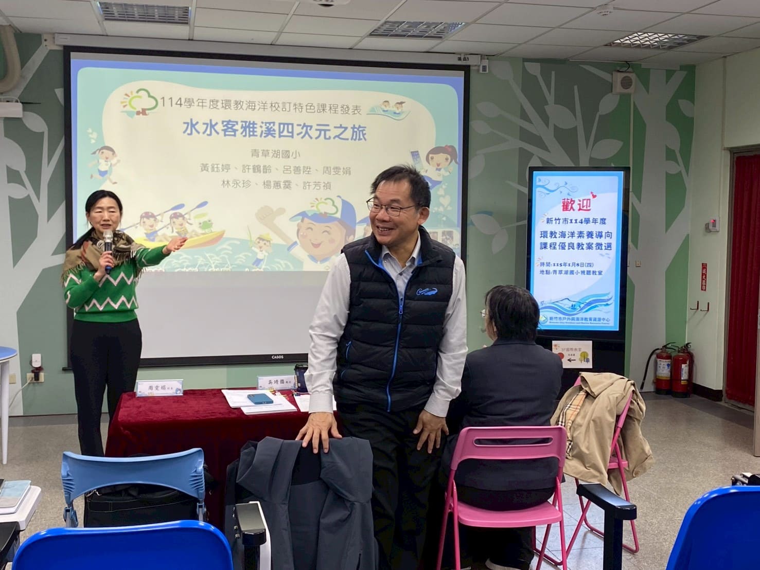 為了推廣海洋教育並激發教學創意,近日在青草湖國小展開了一場充滿知性與創意的「海洋教案徵選評選及公開發表會」。本次活動特別邀請到重量級專家——吳靖國教授與葉蓉樺博士擔任評審委員,透過專業的角度,帶領師生一同探索海洋教育的無限可能。