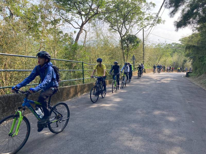 今天是個陽光普照的好天氣,也是光華綠島騎跡探索學習課程的學生們路騎訓練的日子,此行的目的地是寶山第二水庫管理中心。 一大早,孩子們精神奕奕地陸續來到學校,井然有序地牽起自己的腳踏車作行前檢查,腳踏車雖然是學校提供的,但經過12月17日的單車維修課程及12月29日的頭前溪自行車道小試身手之後,人車之間已培養默契。待全員到齊後,在教練的一聲令下,今天的考驗正式展開。 從校門口出發,一路經過頭前溪壘球場、狗狗公園及左岸柯子湖,短暫停留之後,沿千甲路、竹美路、光復路及柯湖路到福龍宮暫歇,路途中除了頭前溪的自行車道之外,車隊不可避免地需要穿梭在車水馬龍的大街小巷,感謝學校老師們協助指揮交通,保護孩子們的安全;感謝路人及車輛耐心等待及配合,成全孩子們的騎跡之旅。 抵達福龍宮,孩子們已經汗流浹背、雙頰通紅,趕緊一人發放一根香蕉並叮嚀他們補充水分及熱量,因為真正的挑戰才要開始。不同於之前,接下來是一連串緩緩上升的山路,陸續有些孩子因為不熟悉變速的訣竅而落在隊伍後面,但是,隨隊老師及大幹部的適時鼓勵及提醒,孩子亟欲戰勝自己、超越極限的企圖心,伴著他們突破一個又一個的關卡,往下一個挑戰邁進。 約莫中午時分,車隊到達寶山第二水庫管理中心,由大幹部將隊員各自帶開,讓孩子們享用午餐,自備的餐點搭配學校準備的營養口糧及橘子,就是人間美味!用餐後讓他們短暫午睡,為下半場的路騎養精蓄銳。 下午的路騎沿環湖車道前行,山路蜿蜒、涼風習習,此等美景讓人疲憊頓消。回到福龍宮稍作休息,孩子們仍精神抖擻,想想他們應該飢腸轆轆,拿出事前準備的餅乾、巧克力及糖果分享,孩子立刻一窩蜂地搶食,這,也是此番訓練才能獨享的樂趣吧! 車隊於下午三點四十分返回學校,回顧這趟旅程,途中雖有零星狀況,仍堪稱順利圓滿。沿途,風景很美,但孩子們各個奮勇向前,互相加油打氣的身影更美!