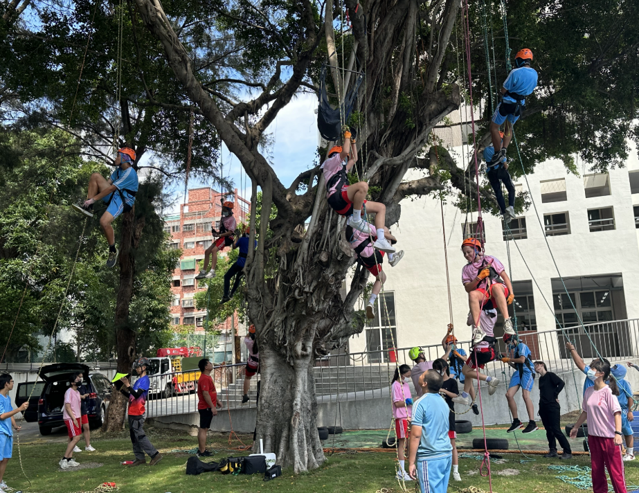 在這個炎熱的午後,班級孩子們在學校的大樹下集合,進行攀樹課程,個個磨拳擦掌,蓄勢待發。小勇士們個個專心聆聽教練們的指導,兩兩互助,著裝,最後成功爬上了校園的大樹。我們看到導師的用心參與,協同教學的老師細心的協助,孩子專心的攀爬,最後從孩子的心得感謝寫作中,我們看見有些孩子從恐懼到挑戰,最後展現出有自信的自我。這樣的課程學校也會持續辦理,也鼓勵學區的孩子若有興趣可上光華國中學校首頁查看相關單位辦理之暑期體驗課程。 | |